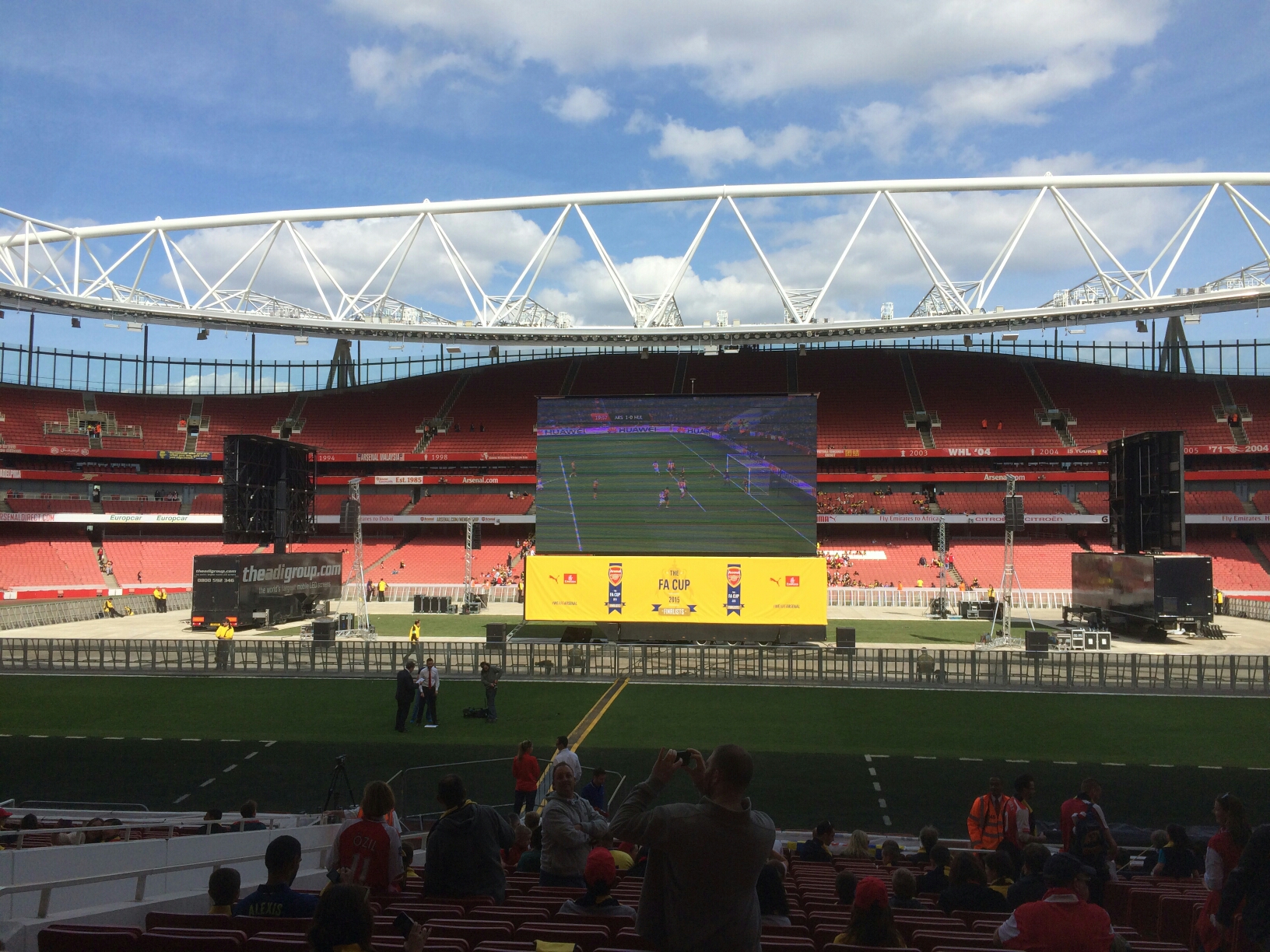 Seeing as ticket allocation was once again sparse – a twenty five thousand allocation to a club who has over forty thousand season ticket holders alone – it meant other avenues had to be pursued as Wembley was unavailable. Most chose Arsenal pubs and the photos that accompanied the tweets announcing this showed various watering holes colourfully adorned with red and white or yellow and blue decorations. Others teamed up with like-minded individuals and watched the cup final at home. I, along with thousands of others, bought a ticket to watch this titanic tussle at our home of football – The Emirates.