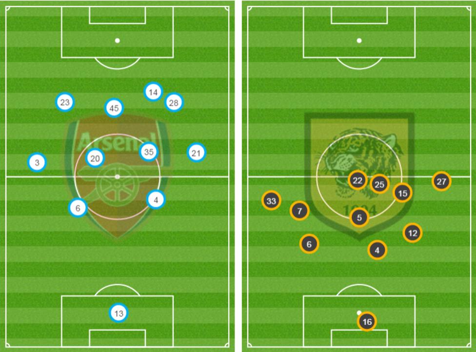 Chances were not at a premium as Arsenal looked to stretch a stoic and deep lying Hull backline, with Mohamed Elneny in particular, looking to play it out wide time and again. The Egyptian, whilst always looking like he played within himself, had no problem with his distribution.